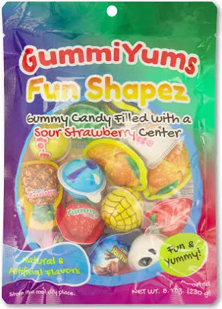 GummiYums: Fun Shapez! (8.1oz) Assorted Gummy Candy Filled with a Sour Strawberry Center