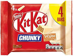 KitKat Chunky White from the UK layers crisp wafer with rich, creamy white chocolate. Thicker than the classic and melt-in-your-mouth smooth — it’s a sweet, satisfying break.